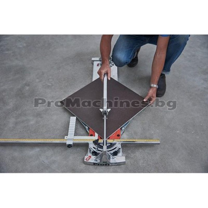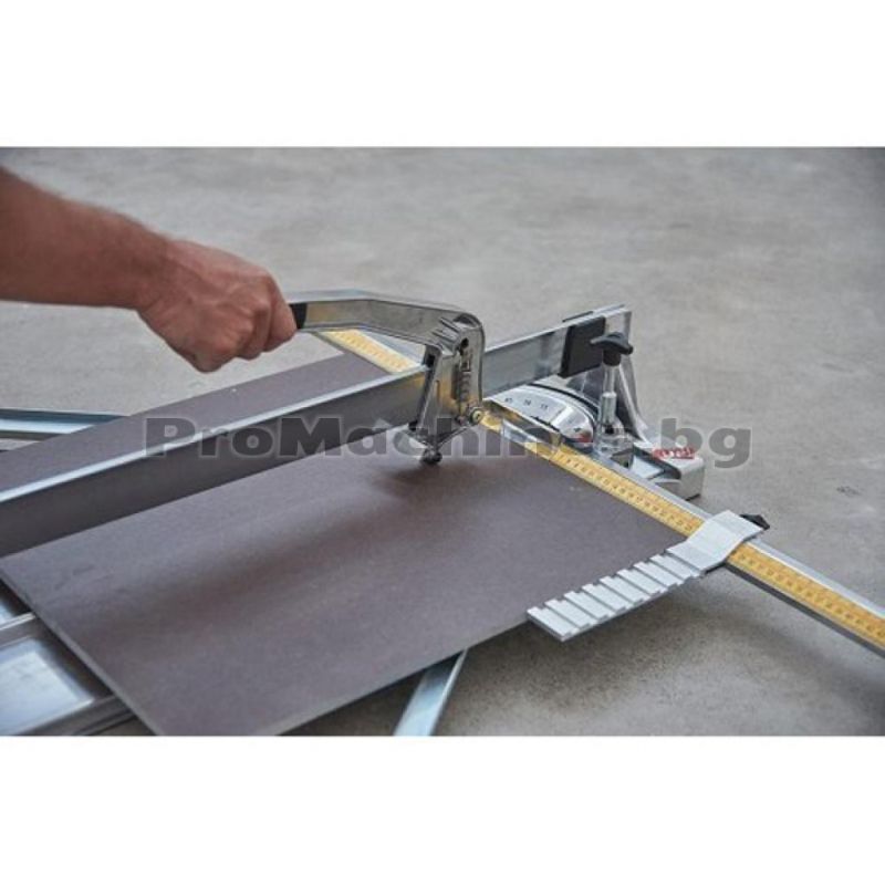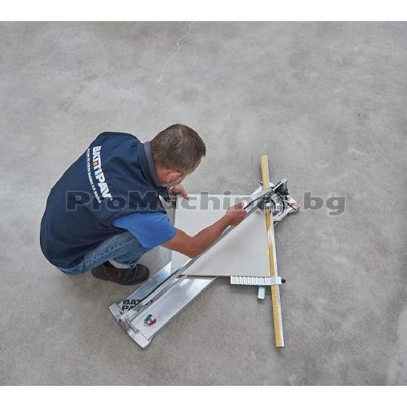 Професионална ръчна машина за рязане на фаянс на марката Battipav Profi 163 Evo. Моделът намира приложение на строителни и ремонтни площадки и е подходящ за право и диагонално рязане на керамични плочки и гранитогрес. Инструментът е с дълъг експлоатационен живот, благодарение на монорелсовата си конструкция и наличието на лагери. Уредът работи изключително прецизно и точно с помощта на осигурения удължен линеал с 2 скали и регулируемия ограничител за бързо настройване.