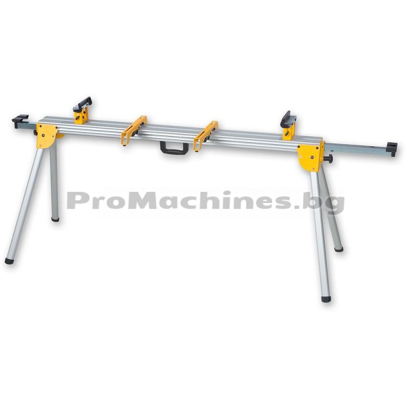 Стойката за циркуляр на Dewalt е предназначена за циркулярни триони, както и за бързо рязане на дълги детайли. Моделът е изработен от алуминий и има здрава и устойчива конструкция. Дължината на масата е 1765.3 мм, а когато стелажите се разпънат, достига до 3835.4 мм. Стойката е удобна и практична за работа, тъй като има възможност за разширяване. Максималното й натоварване е 227 кг.